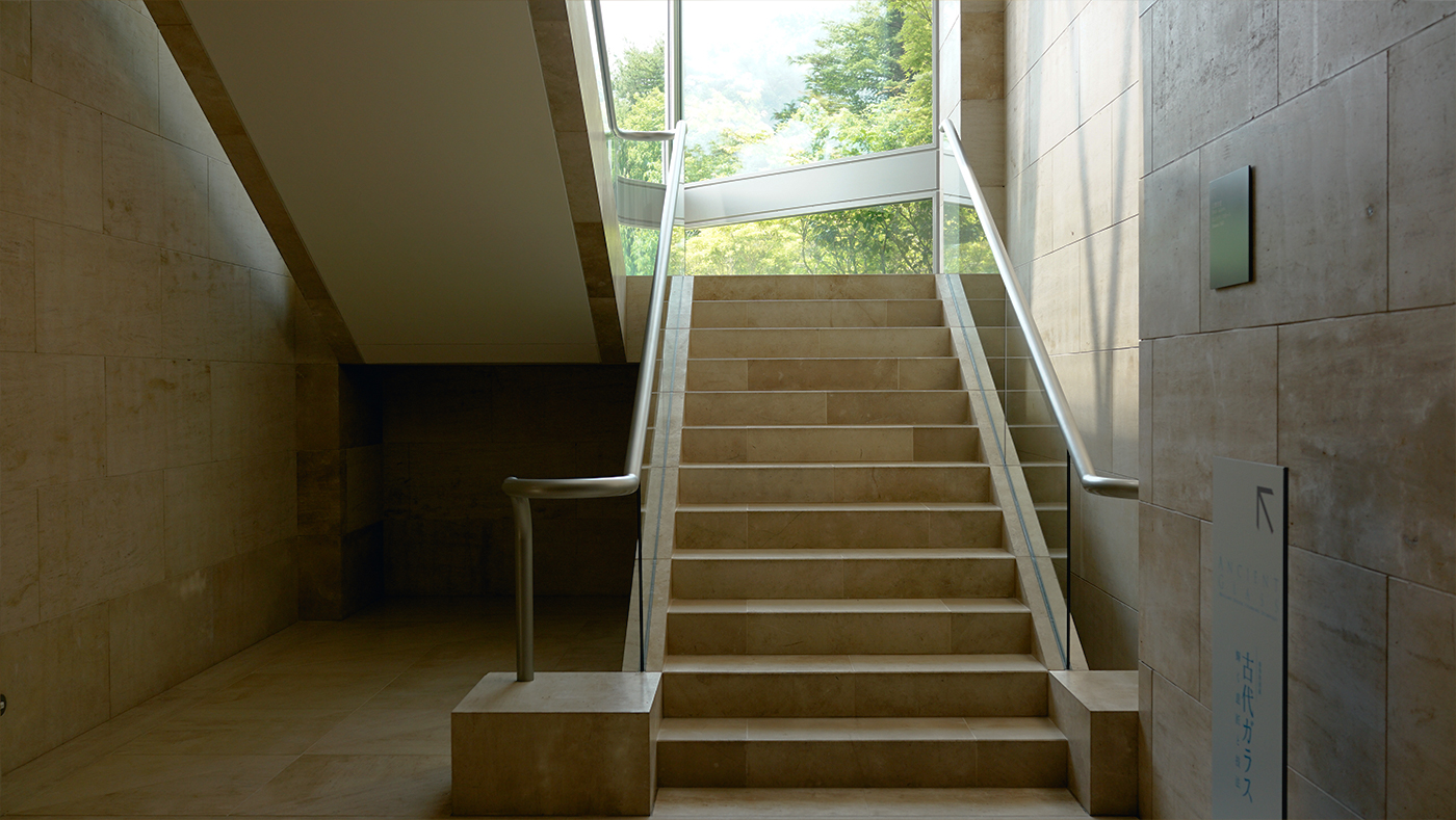 건축 답사에서 계단을 살펴보는 재미가 있다. 뮤지엄을 빠져나가기 전 미호 뮤지엄 지하 1층에서 1층으로 오르는 계단을 살펴 본다.