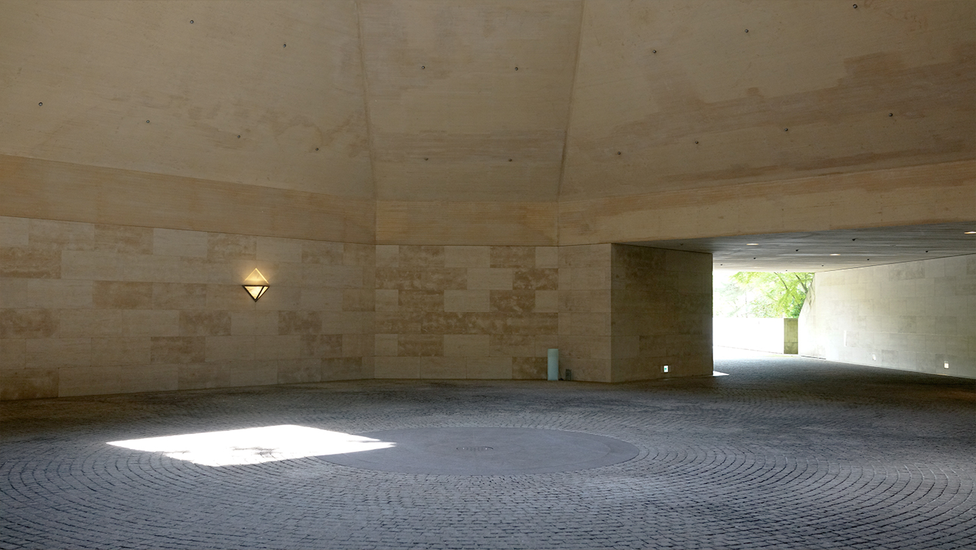 배리어프리 홀 입구를 살펴 보면, 건축물의 대부분이 땅 속에 있는 뮤지엄이라는 것을 알 수 있다.