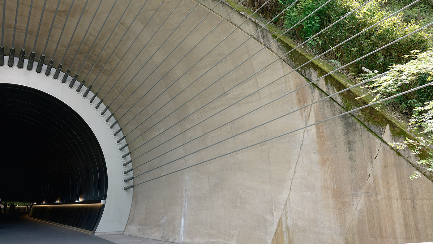 미호 뮤지엄 본관으로 향하는 터널. I.M.페이가 설계한 미호 뮤지엄은 '도원향(桃源鄕 A.K.A 무릉도원)'을 콘셉트로 설계되었다.