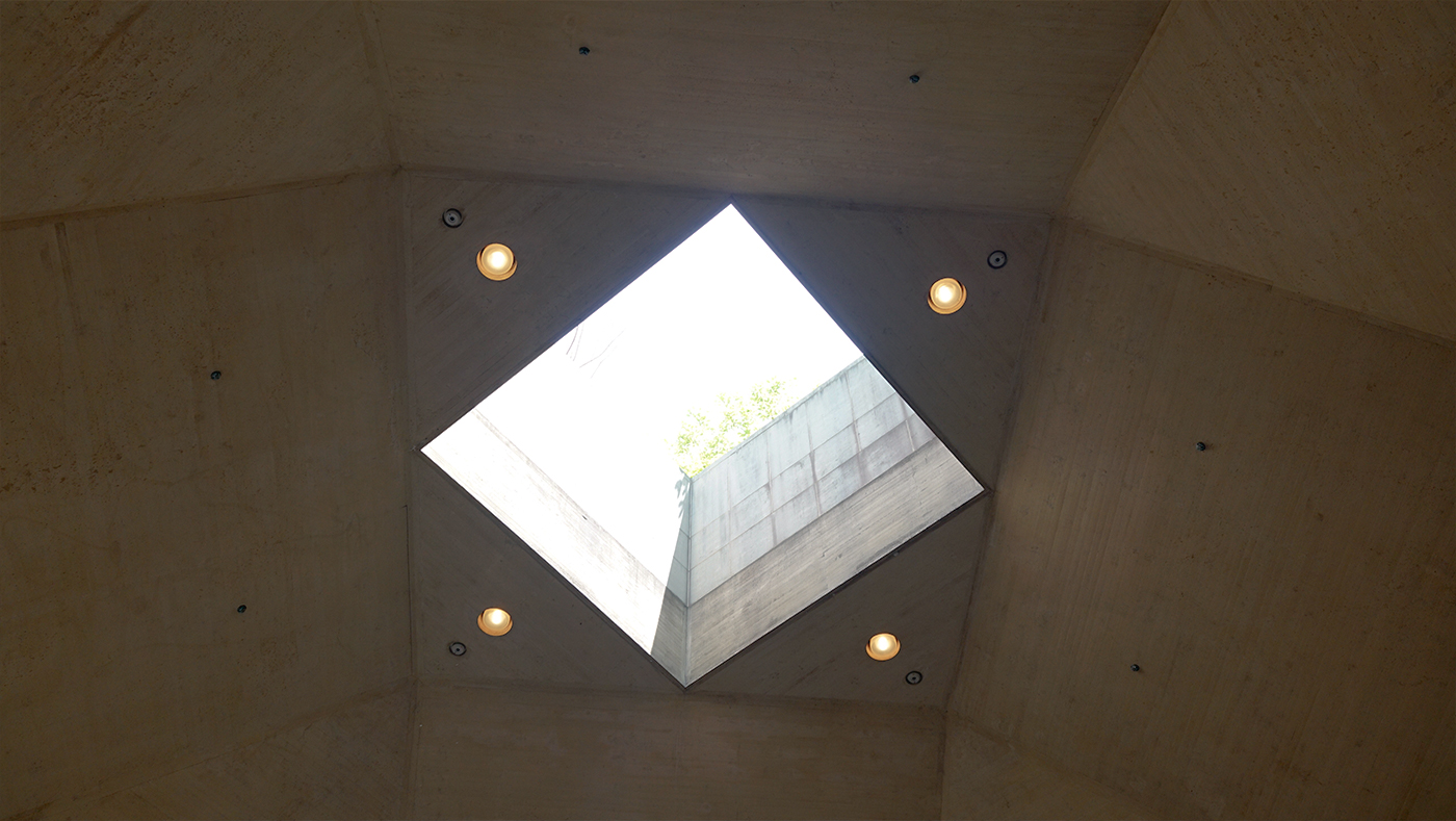 마치 우물 아래에서 위를 올려다 보는 듯한 느낌이다. 이곳에 산을 파내서 건축한 땅 속이라는 것을 여실히 느끼게 한다.