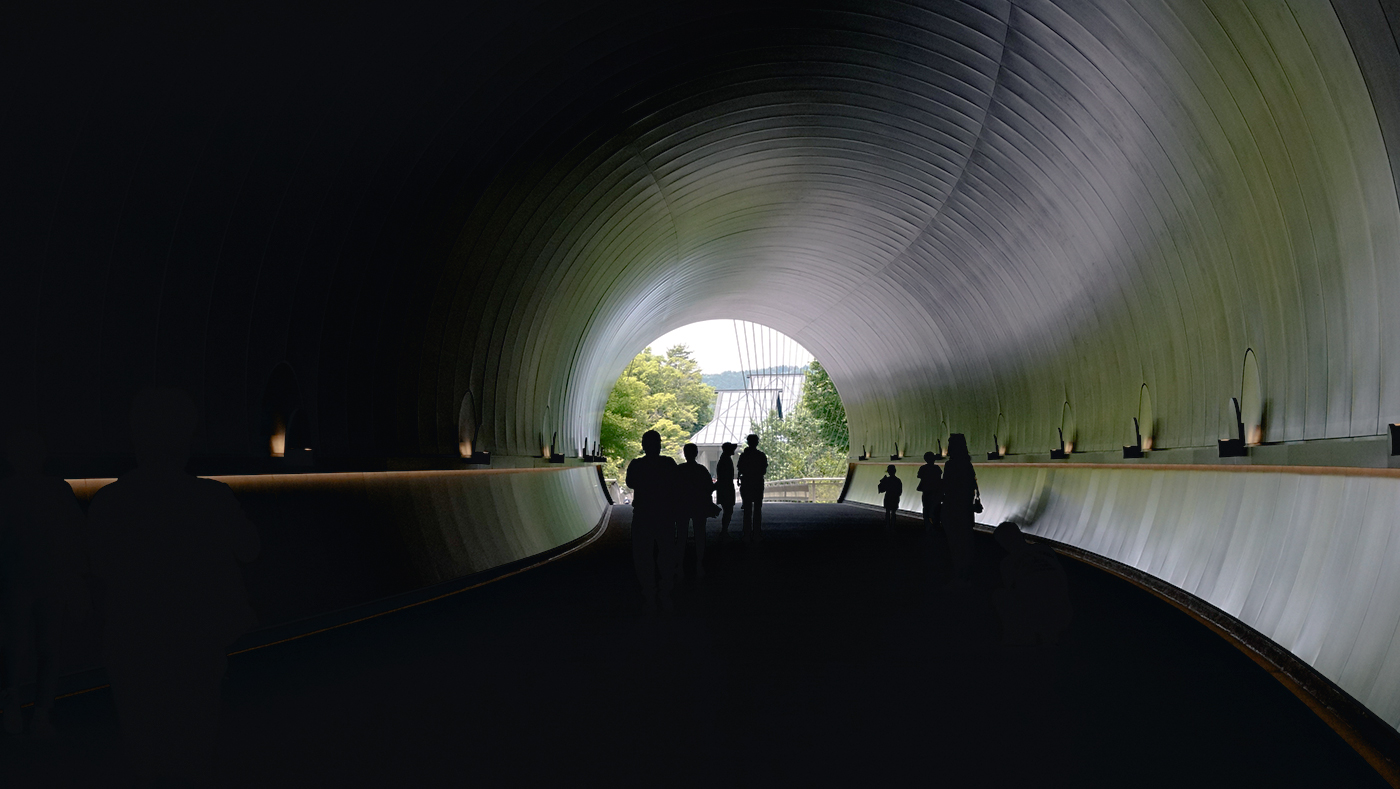 큰 호를 그리며 굽어진 터널과 수양벚나무 길이, 길의 끝을 절묘하게 가리어서 산책길을 하나의 시퀀스가 아닌 서너 개로 분절 된 시퀀스로 느껴지게 한다. 이로 인해 미호 뮤지엄의 경험과 일상의 경험 사이에 수 많은 레이어가 건축적으로 쳐져서 현실과 더욱 멀게 느껴진다.