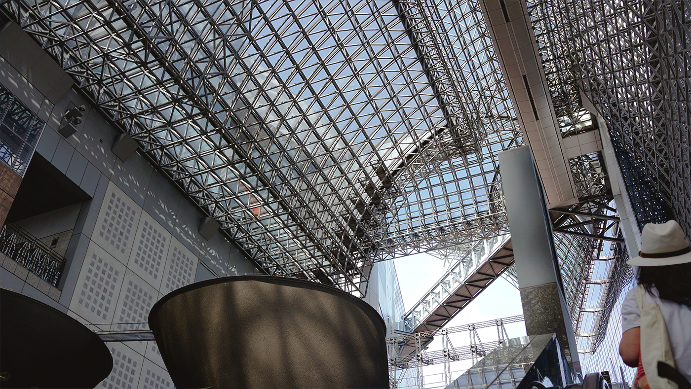 토요일 이른 아침부터 분주한 교토 역 앞. 교토역은 1997년 건축가 하라 히로시의 작품이라 한다.