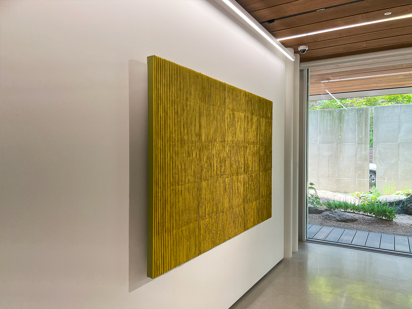 콘크리트 마감 부분도 수직의 골을 그리며 박서보 작가의 묘법을 연상캐 한다.