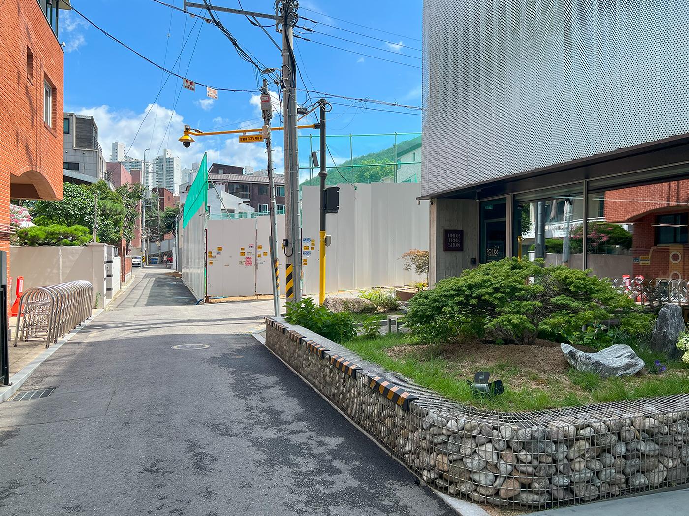 박서보 재단 '기지'는 조병수 건축가가 이끄는 BCHO 파트너스에서 건축했다. 박서보 작가 측에서 건축가에게 의뢰한 것으로 보인다. 한적한 주택가에 자연스럽게 스며든 겸손한 인상이다.