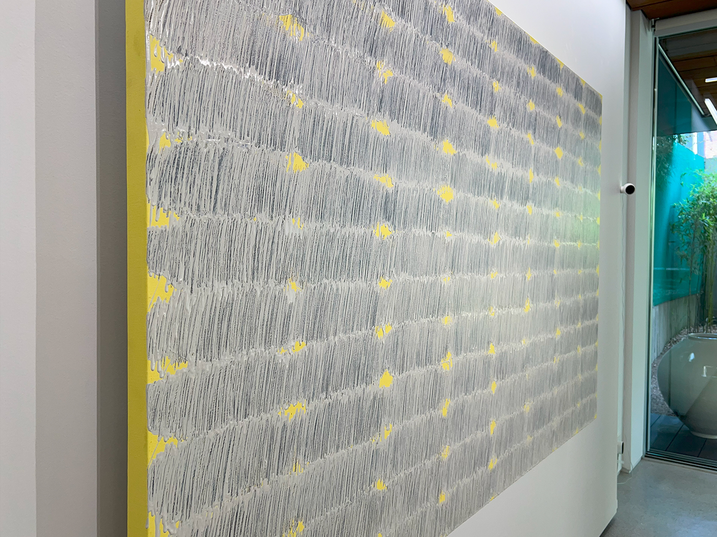 작품에 따라 여백을 찾아볼 수 있다. 벚꽃에 영감 받은 위 작품의 경우 중앙 하단에 세로로 긴 여백이 있다. 이는 숨을 쉴 공간을 염두에 둔 것이라 도슨트가 설명했다. 빽빽한 골이 작품을 가득 채우다 보니 구성적인 미학으로 '숨 쉴' 여백을 두었을 수도 있겠고, 골을 파는 행위로써 작가 자신이 물리적으로 '숨 쉴' 여백을 둔 것일 수도 있겠다는 생각을 했다.