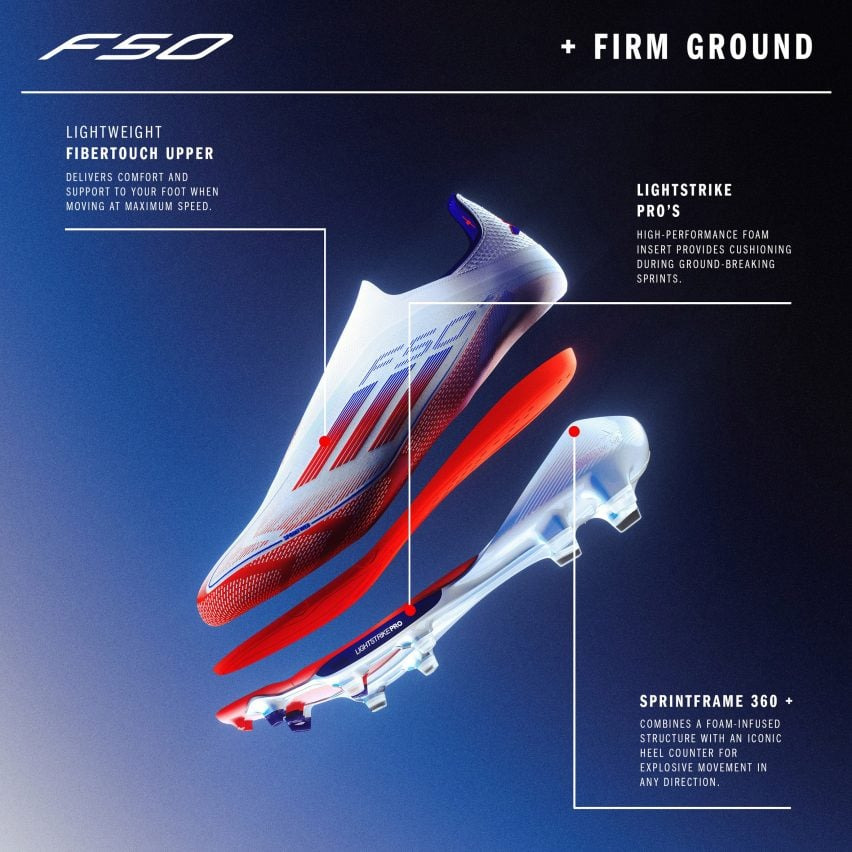 "아디다스 입장에서, 이것은 우리의 첫 번째 축구 슈퍼슈즈입니다,"라고 마일스는 Dezeen과의 인터뷰에서 밝혔습니다. "멋진 점은, 이 기술이 독점적이라는 것입니다. 특허청에 등록된 우리의 프로젝트로, 많은 위험을 감수하고 새롭게 개발한 것입니다."