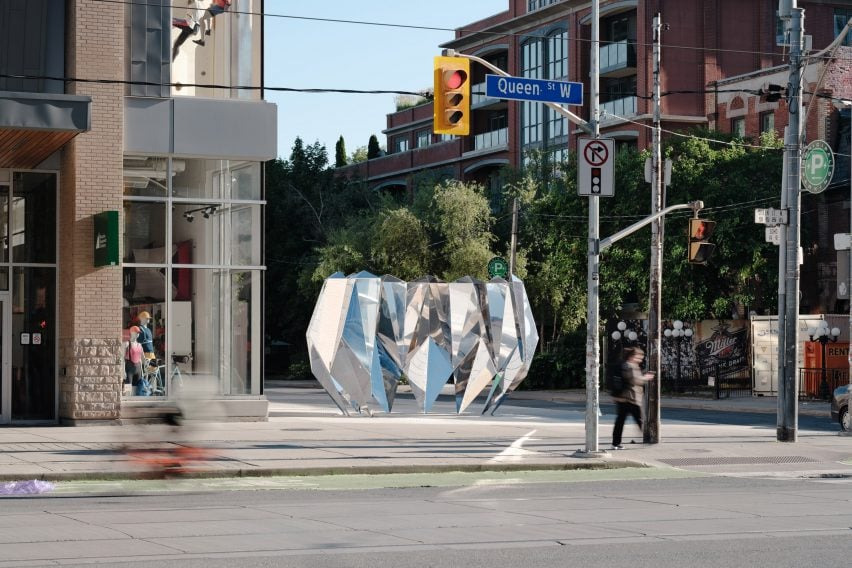 현지 디자이너 지흘링 리(Jyhling Lee)는 토론토 도심의 "아이코닉"한 거리인 퀸 스트리트 웨스트(Queen Street West)에 종이접기에서 영감을 받은 스테인리스 스틸 조형물을 설치했습니다. 이 조형물은 "리플렉터(Reflector)"라는 이름을 가지고 있으며, 대략 5미터 너비에 3미터 높이로, 거울처럼 반사되는 스테인리스 스틸로 제작되었습니다. 이 작품은 퀸 스트리트 웨스트의 한 모퉁이에 위치하고 있으며, 도심의 활기찬 에너지를 반영하는 공공 예술작품으로 디자인되었습니다.