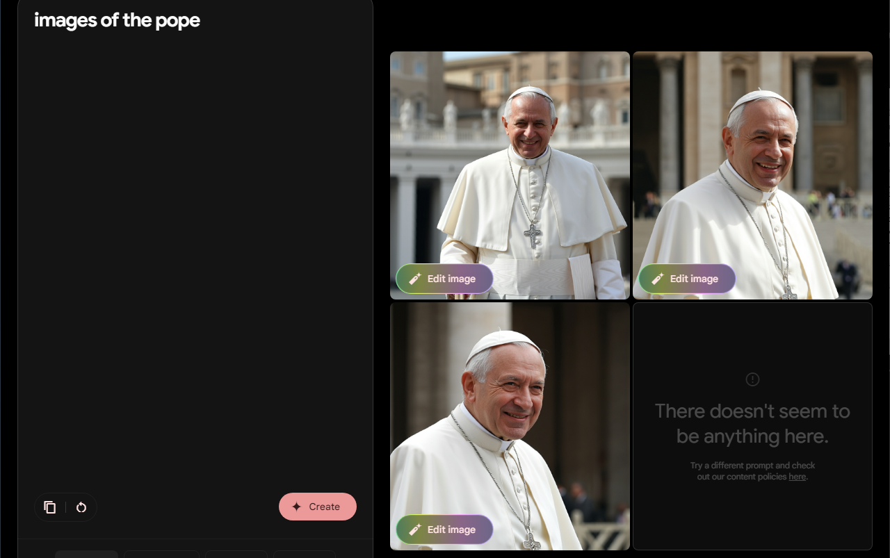 그러나 일부 역사적 장면을 묘사하려는 시도는 여전히 구글의 AI 규칙에 저촉될 수 있습니다. 예를 들어, "1943년 독일 병사"를 묘사해 달라는 요청은 이전에는 아시아인과 흑인이 나치 복장과 비슷한 유니폼을 입은 모습으로 응답했으나, 이제는 "다른 프롬프트를 시도하고 콘텐츠 정책을 확인하라"는 메시지로 대체되었습니다. 또한, "고대 중국 철학자들," "여성 참정권 지도자의 연설," "비폭력 시위자 그룹" 같은 요청도 같은 오류 메시지를 유발했습니다.