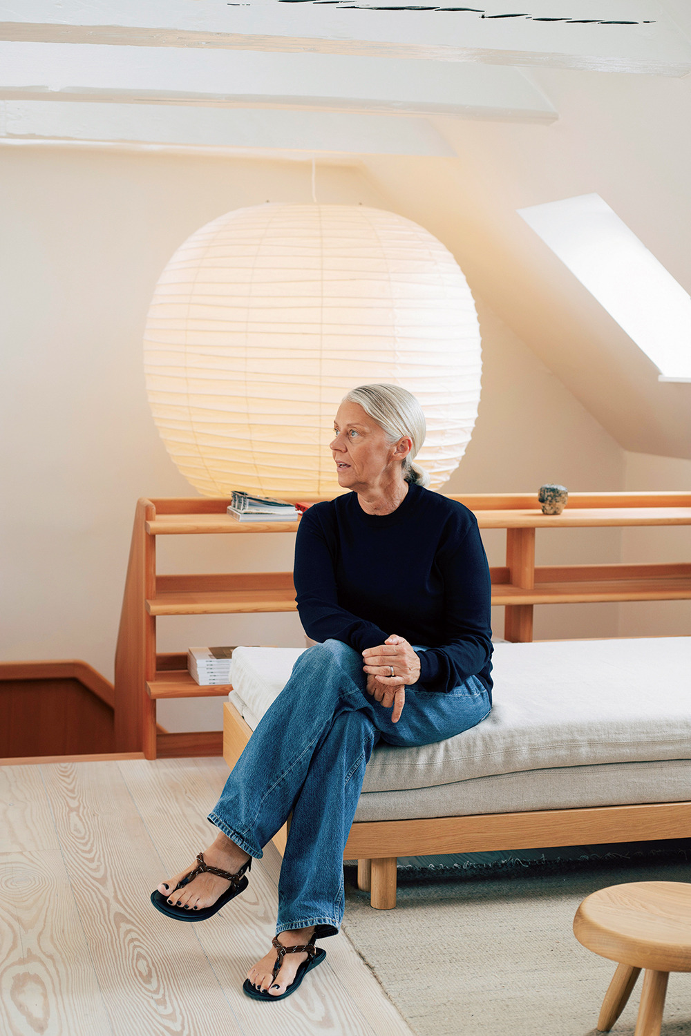 사진가였던 아버지가 가지고 있던 모노크롬 사진집 『Femmes de Paris』에 등장하는 일하는 여성들의 스타일을 초등학교 1학년 때부터 뚫어지게 바라보았고, 중학생 시절에는 좋아하는 빈티지 보트넥을 유니폼처럼 매일 입곤 했습니다. 건축과 가구, 제품 등 덴마크 디자인에 둘러싸여 성장했습니다. "이게 치프 시크였다고는 생각하지 않지만, 어릴 적부터 '잘 만든 것'에 관심이 있었고, 편안한 것이면 같은 것을 계속 입었습니다." 아우터는 〈맥킨토시〉나 클론비사의 원단으로 만든 울 코트 등을 입고, 흰색 티셔츠는 〈스튜디오 니콜슨〉에서 추가 구매하며, 니트는 〈질 샌더〉나 〈셀린느〉의 네이비 또는 차콜 그레이를 선택했습니다.