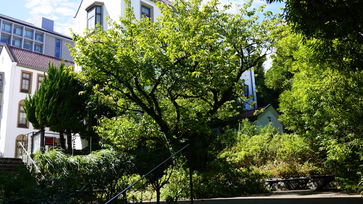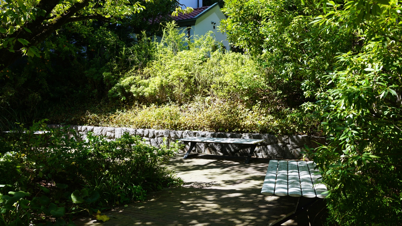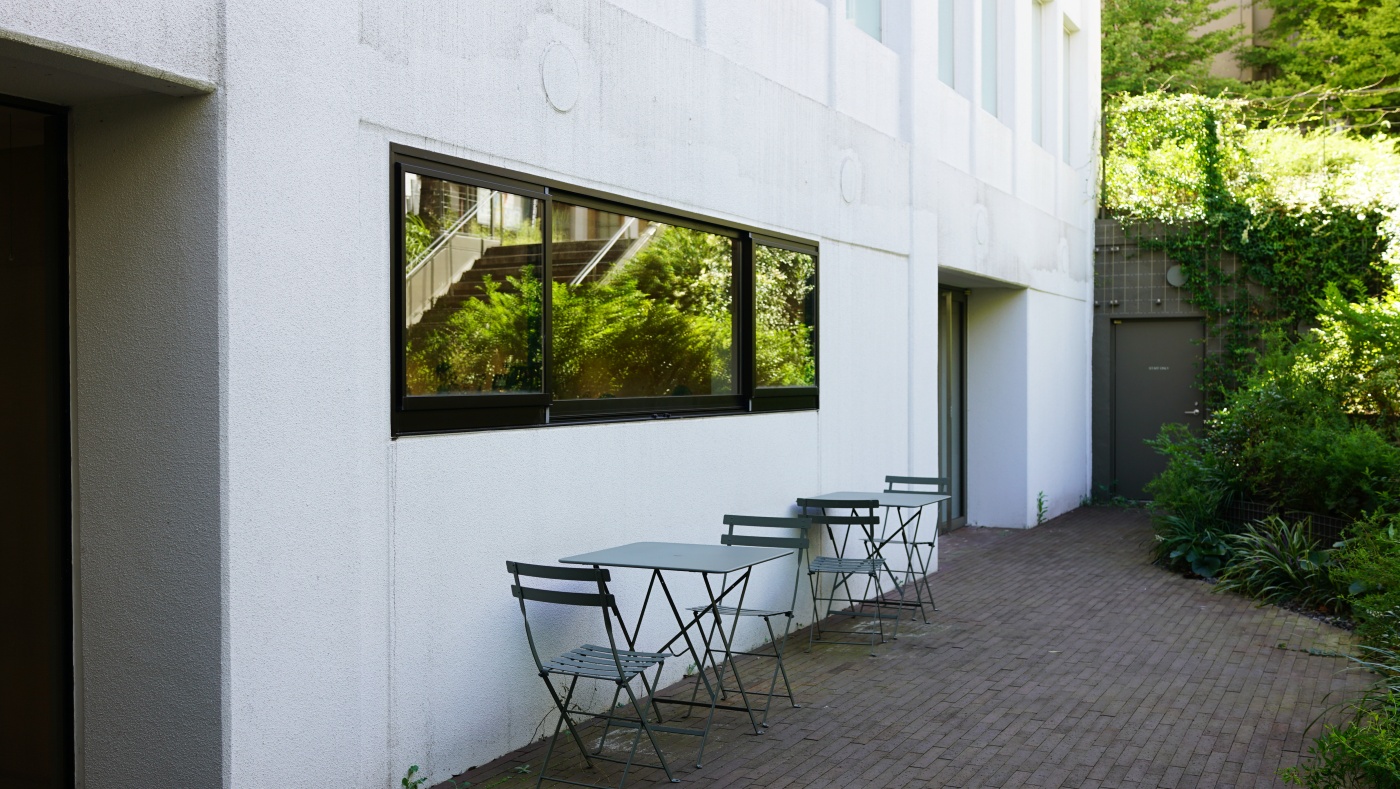 후문 야외 정원이 예쁘다. 날씨가 좀 더 시원했다면 야외 테라스나 이곳 정원 벤치에 앉아 커피를 마셨으리라.