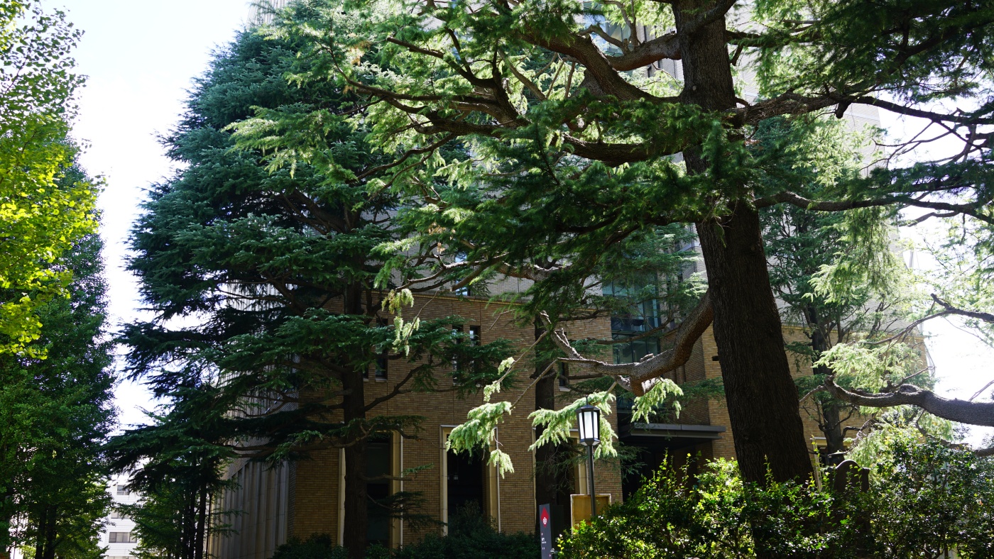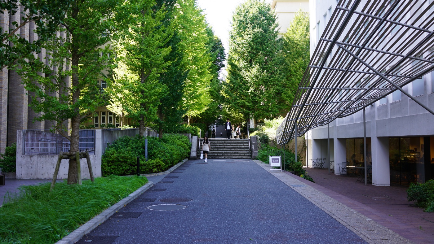정문으로 이어지는 길, 가로수가 엄청나게 높게 자랐다. 아마 와세다대학의 전신인 도쿄전문학교가 지어진 1880년대 부터 이곳에 있지 않았을까?