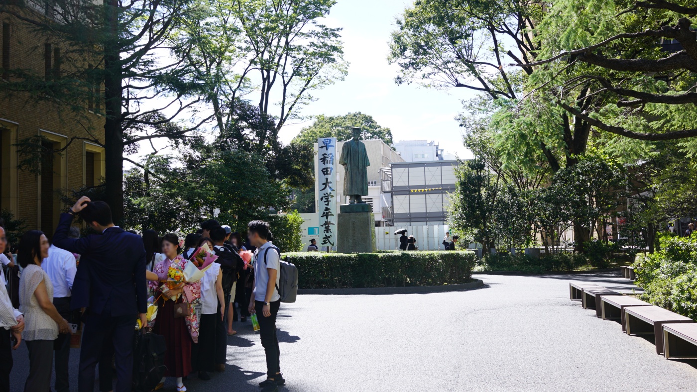 와세다대학의 설립자인 오쿠마 시게노부. 우연히 이날이 가을 졸업식이어서, 이곳 앞에서 사진을 찍기 위해 줄지어 선 졸업생과 가족들의 행렬을 감상할 수 있었다.