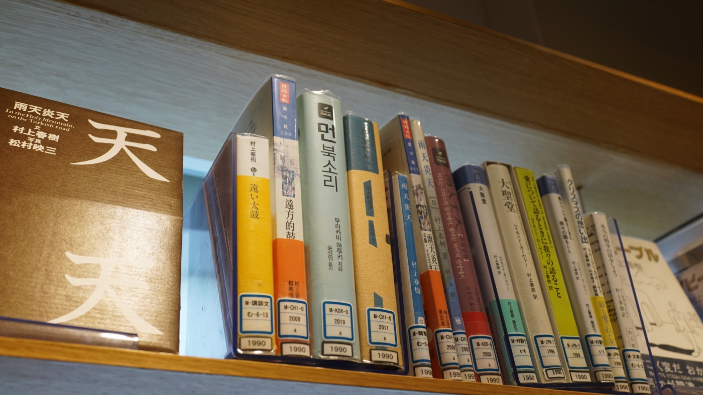 꼭 카페를 이용하지 않아도 자유롭게 책을 열람할 수 있다. 사진상에 보이는 책장에는 무라카미 하루키의 책의 컨셉에 따라 관련된 서적들을 추천하는 방식으로 책이 진열되어 있었다.