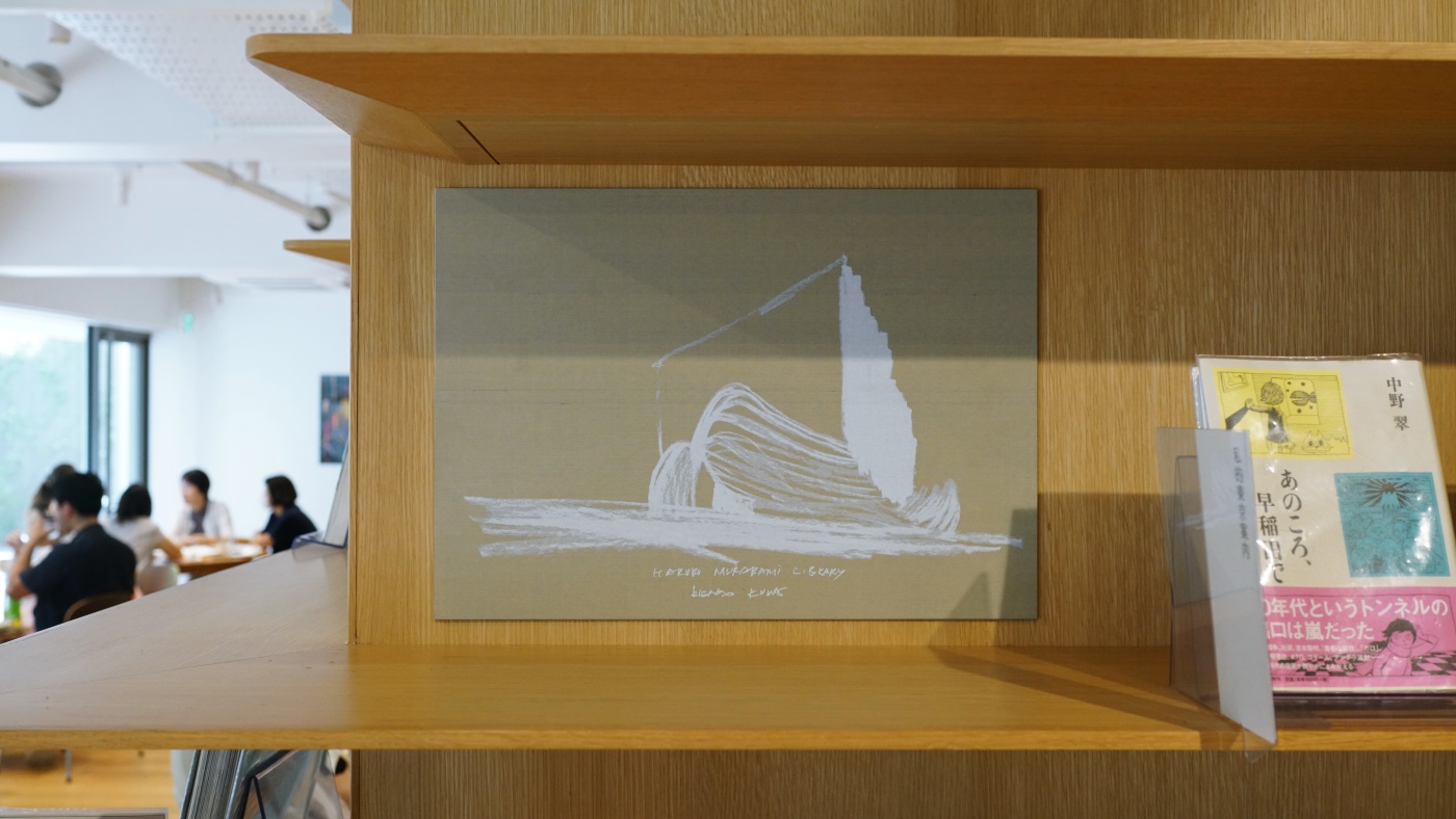 무라카미 하루키 도서관은 무라카미 하루키가 친분이 있던 쿠마 켄고에게 직접 의뢰해 완성됐다. (지금 생각해보면 와세다 대학의 설립자인 오쿠마 시게노부, 그의 이름 '쿠마, 일본어로 곰'와 발음이 같은 곰(쿠마 くま)을 마스코트로 선정한 것, 건축가는 쿠마 켄고.. 여기저기 쿠마 쿠마 쿠마 투성이다.) 그래서 이곳에 건축 스케치, 정확히 말하자면 외관 파사드 설치물 스케치와 설계 의도가 설명되어 있다.