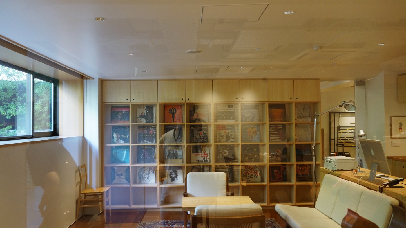 실제로 사용했던 작업실에는 왼쪽 창문 아래편에 JBL과 탄노이 스피커가 마련되어 있는데, 이곳에는 없다. 대신 1층으로 올라가면 무라카미 하루키가 기증한 LP 바이닐레코드 전시와 이를 들어볼 수 있는 청음실이 있다.