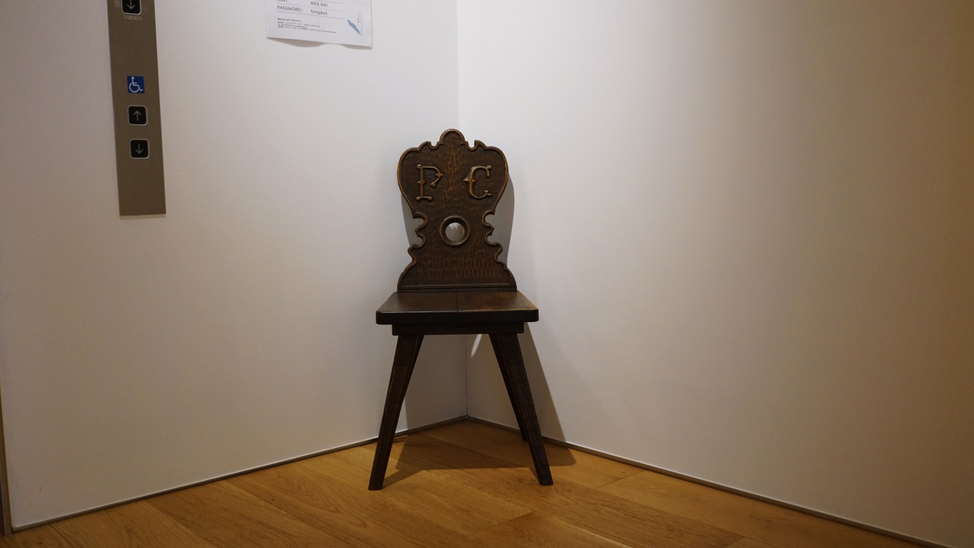 엘리베이터 2층에서 내리자 마자 보였던 의자. P.C.라고 쓰인 의자인 걸 보니, 무라카미 하루키가 젊은 시절 운영하던 바인 피터캣(Peter Cat)에 쓰던 의자가 아닐까 싶다. (그렇다면 엄청 의미 있잖아!)