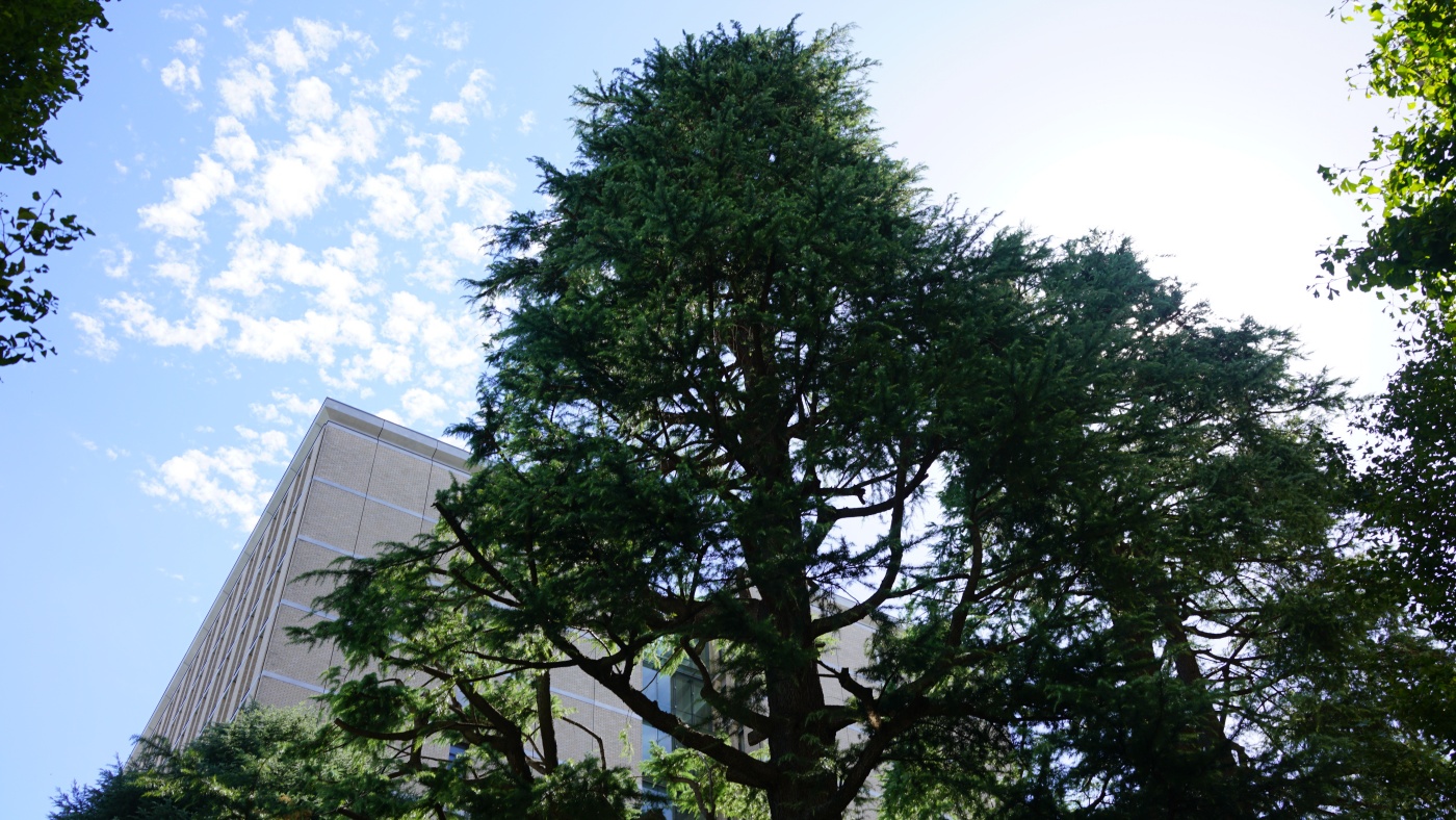 1층 출입구를 통해 야외로 나와 바깥 공기를 쐔다. 청명한 초가을 날씨에 기분이 좋았다.