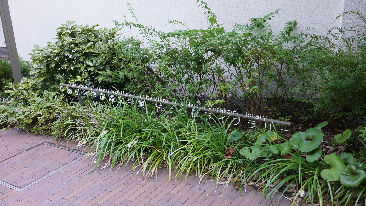 그리고 바닥에는 간판이라 부르기 어색한 '와세다 국제문학관 무라카미 하루키 도서관' 표지판이 있다. 잘 찾아왔구나, 확신했다.