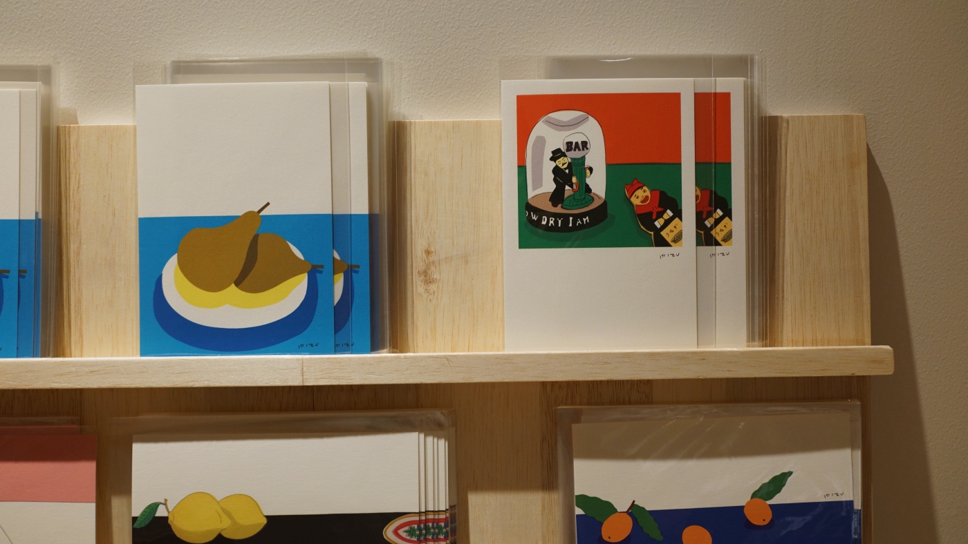 무라카미 하루키의 오랜 파트너인 안자이 미즈마루의 일러스트 엽서들. <중국행 슬로우보트> 원서 표지에 쓰인 배 일러스트를 기념품으로 샀다.