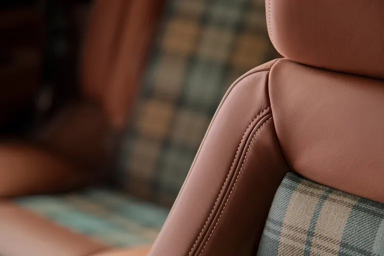 내부는 고객의 취향에 따라 가죽이나 고급 패브릭으로 리트리밍되었습니다. 특히 블랙 워치 타탄(Black Watch tartan)과 같은 매력적인 디자인이 특징입니다. 또한, 컵 홀더와 충전 포트와 같은 현대적인 편의 시설이 추가되어 실용성을 높였습니다. 이러한 기능들은 클래식 모델에서는 찾아볼 수 없던 요소들입니다. KSR 모델은 원래의 2도어 또는 4도어 차량에 모두 적용할 수 있으며, 세계적인 고객 기반을 보유하고 있습니다.