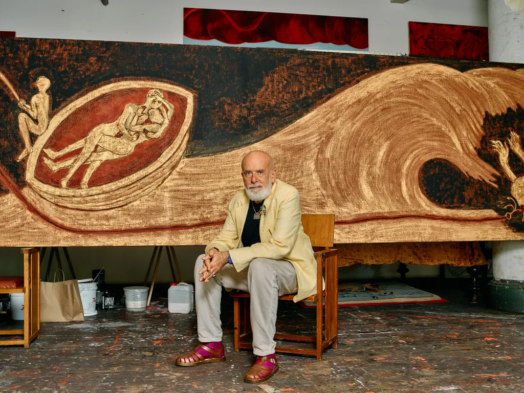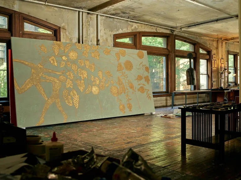 클레멘테는 일레븐 매디슨 파크의 2층에 위치한 클레멘테 바에서 벽에 직접 그림을 그리며 자신의 예술적 비전을 온전히 표현했습니다. 이 금빛으로 가득 찬 프리즈는 꿈속을 떠도는 듯한 상태에서 서로를 껴안고, 작은 배를 타고 바다를 항해하며, 금빛 석류가 매달린 가지를 통해 머리를 잃는 인물들을 그렸습니다. 그의 작품은 ‘개인 정체성이 파편화된 존재’라는 주제를 바탕으로, 그가 꾸준히 탐구해 온 아이디어를 시각적으로 풀어냈습니다. 이 프리즈는 공간 자체를 하나의 거대한 예술 작품으로 변화시켰습니다.