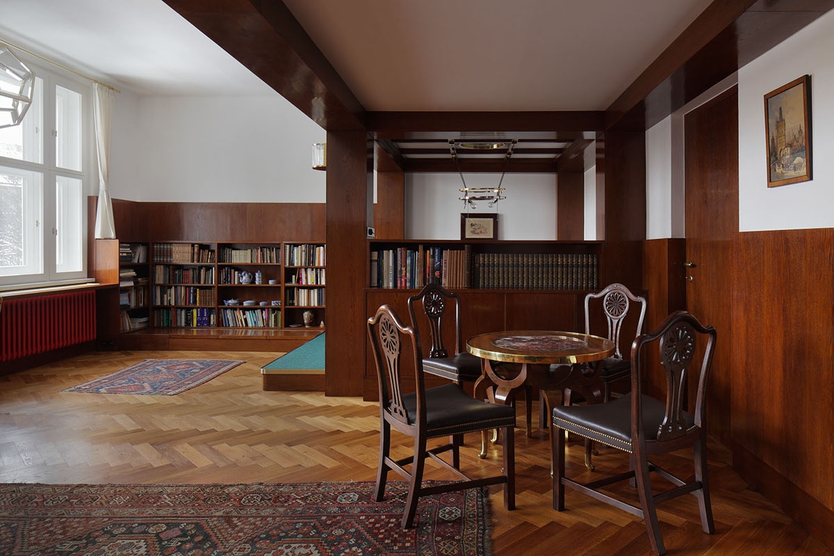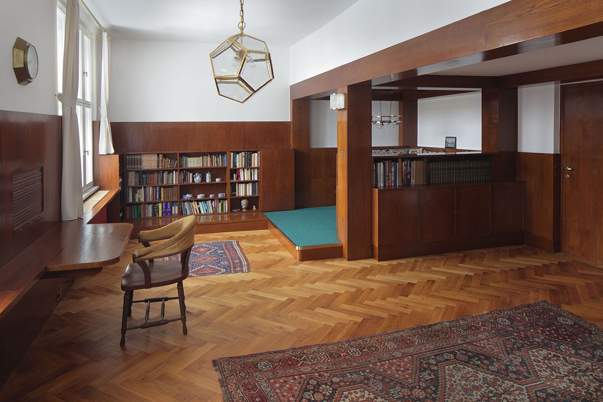 리처드 히르슈의 아파트는 처음 설계될 당시 플젠의 히르슈 가문의 아들 리처드를 위한 독신 생활 공간이었습니다. 이 공간은 두 개의 창을 포함한 다용도실로 설계되었으며, 식사와 공부를 동시에 할 수 있는 기능적인 구성을 가졌습니다. 로스는 이 공간에서 기존의 전통적 공간 배치와 달리, 시각적 확장을 통해 공간을 더욱 넓게 보이게 했습니다. 이 아파트는 로스가 설계한 다른 주택들처럼 입체적인 공간 구성을 통해 그만의 독창적인 공간감을 표현했습니다.