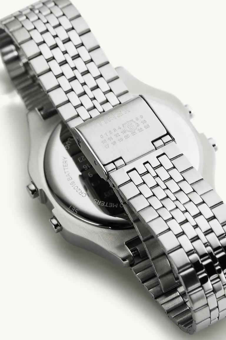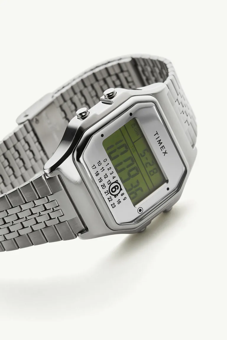 아이코닉한 타임피스인 티맥스(Timex)의 T80 디지털 시계가 프랑스 패션 하우스 MM6 메종 마르지엘라(MM6 Maison Margiela)와의 협업을 통해 재탄생했습니다. T80 시계는 LCD 디스플레이와 디지털 숫자, 스테인리스 스틸 밴드를 특징으로, 미니멀한 디자인과 필수 기능으로 젊음과 복고풍의 감성을 불러일으킵니다. 이번 협업은 전통적인 액세서리 디자인을 새롭게 재해석하는 MM6 메종 마르지엘라의 독창적이고 실험적인 접근 방식을 반영하고 있습니다.
