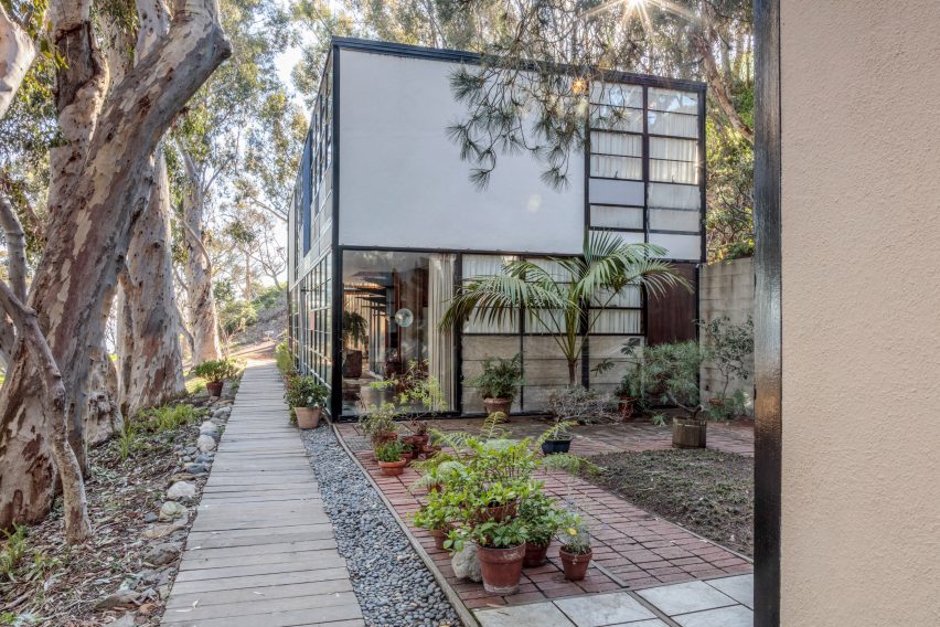 임스 부부는 1940년대 아트 & 아키텍처(Art & Architecture) 잡지의 소유주 존 엔텐자(John Entenza)의 의뢰로 케이스 스터디 하우스 프로그램을 통해 주택을 설계했습니다. 케이스 스터디 하우스 8(Case Study House 8), 즉 임스 하우스(Eames House)는 강철 프레임을 기반으로 한 직사각형 건물로, 대형 창문과 몬드리안 스타일의 그리드 디자인을 특징으로 했습니다. 이 집은 임스 부부가 추구한 단순성과 실용성의 전형으로, 이후 하이테크 건축의 선구자로 평가되었습니다.
