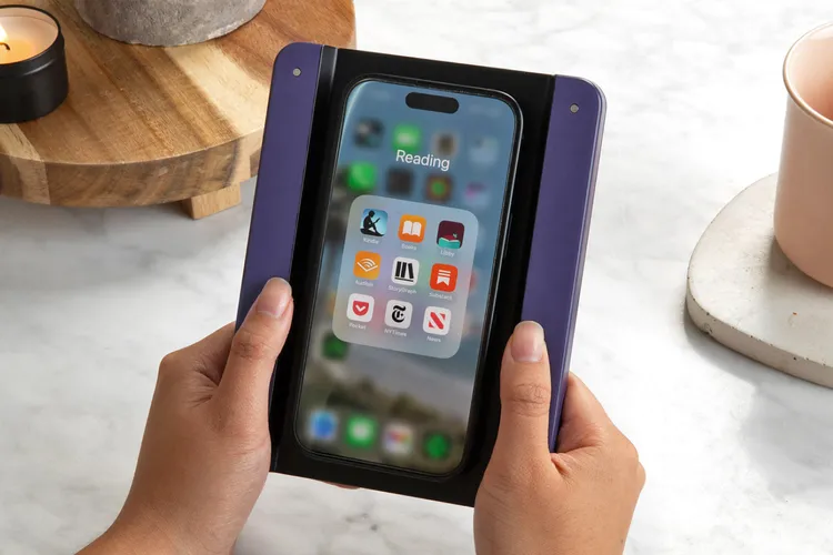 e-리더의 핵심인 집중된 독서 환경을 만들기 위해 아스트로패드는 NFC 칩과 새로운 모바일 앱을 함께 제공합니다. 북케이스에 스마트폰을 부착하면 자동으로 선호하는 독서 앱이 실행되며, 동시에 알림 및 기타 방해 요소를 일시적으로 끌 수 있습니다. 그러나 아스트로패드는 이 앱이 TikTok과 같은 특정 앱의 접근을 차단할 수 있는지에 대해서는 명확하게 설명하지 않았습니다.