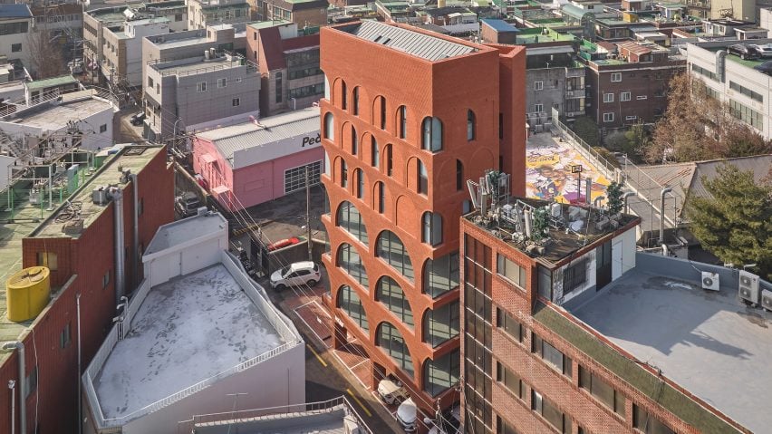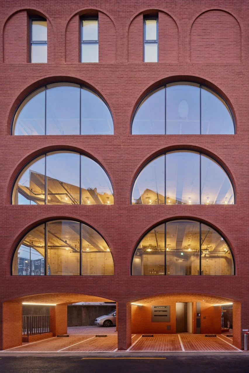 서울 성수동에 위치한 필로메 빌딩(Fillome Building)은 지역 스튜디오 소수 아키텍츠(Sosu Architects)가 설계한 복합용도 타워로, 빨간 벽돌 아치형 개구부가 외관을 생동감 있게 만들어줍니다. 이 건물은 세 개 층의 상업 공간과 세 개 층의 주거 공간을 결합하여 지하 주차 공간 위에 세워졌으며, 벽돌 필로티 구조로 구성되어 있습니다. 소수 아키텍츠는 성수동이 과거 공장과 창고 건물로 채워졌던 반산업 지역의 역사를 상기시키기 위해 이 지역의 상징적인 빨간 벽돌을 사용했습니다.