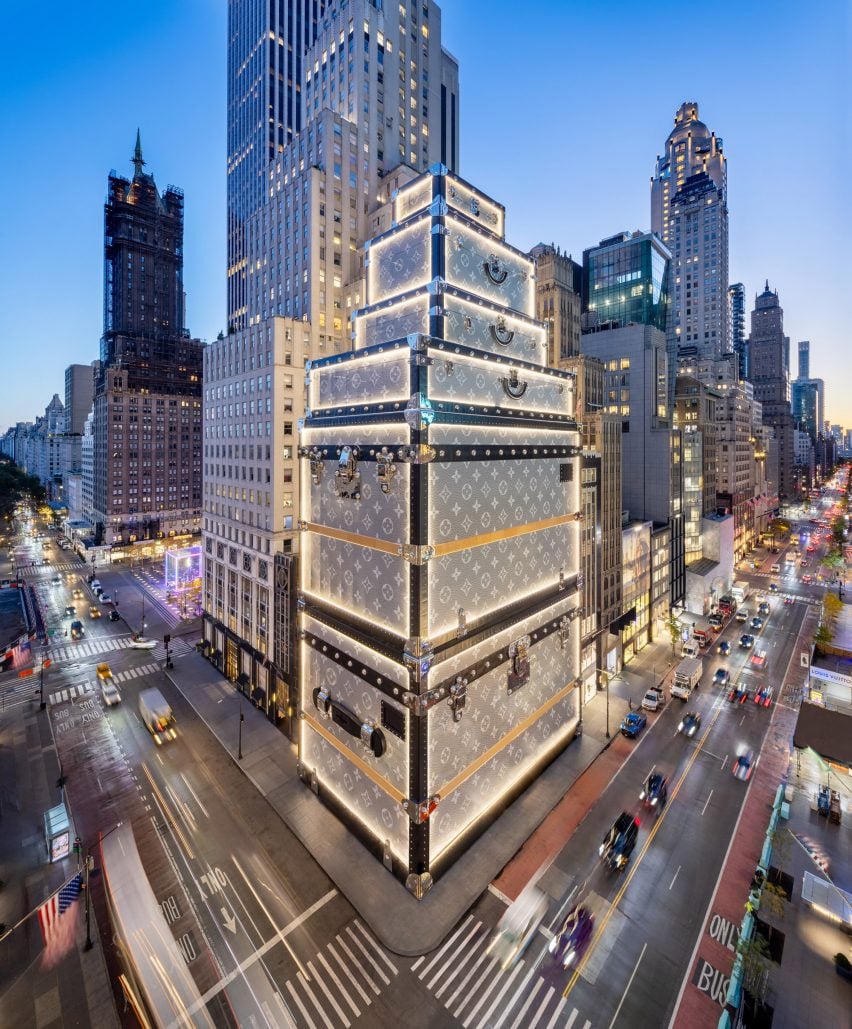루이비통(Louis Vuitton)이 뉴욕 플래그십 스토어의 리노베이션 기간 동안 매장을 상징적인 트렁크 외관으로 감췄습니다. 이와 동시에, 근처 임시 매장으로 이전하며 OMA 파트너 쇼헤이 시게마츠(Shohei Shigematsu)와 협업해 조각 작품을 선보였습니다. 이 독특한 외관은 루이비통의 전통적인 Trianon Grey 캔버스에서 영감을 받아 제작되었습니다.