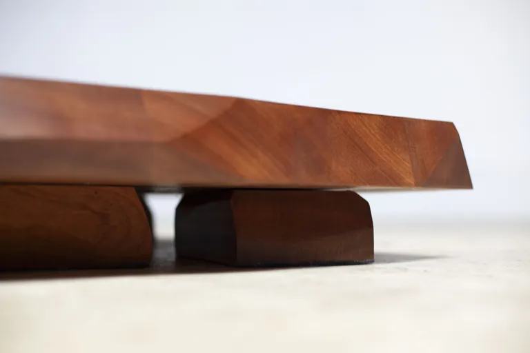 케메노는 센트럴 세인트 마틴스(Central Saint Martins)와 영국 왕립예술대학(Royal College of Art)에서의 학업 경험을 바탕으로 예술과 디자인을 모두 섭렵한 독특한 경로를 걸어왔습니다. 전통적인 목공 기법에 얽매이지 않고 재료에 직관적으로 접근하는 태도는 그만의 자유로운 제작 과정을 구축하게 했습니다. 초기에는 추상적 조각 작업을 선호했지만, 팬데믹 기간 동안 실용적 가구 디자인으로 전환함으로써 작품에 새로운 기능적 가치를 부여했습니다. 이런 변화는 단순한 예술적 표현을 넘어 일상에서 사용 가능한 고급스러운 오브젝트로서 가구를 재정의하는 계기가 되었습니다. 결국 케메노의 디자인은 세심한 수공예 기술, 구조적 실험, 조형적 아름다움이 어우러진 결실로 평가받고 있습니다.