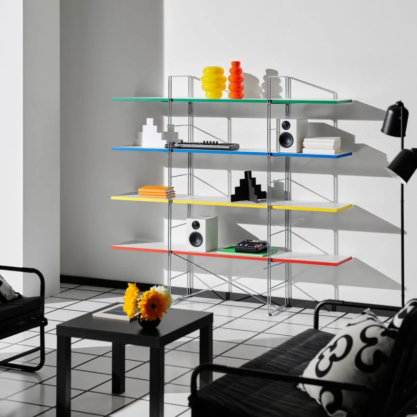 이번 컬렉션에서 특히 주목받는 비아코레 선반은 가벼운 도금 강철 프레임에 양면 사용이 가능한 파티클보드 선반을 갖춘 것이 특징입니다. 한쪽은 흰색, 반대쪽은 진한 회색으로 제작되어 배치에 따라 분위기를 다양하게 연출할 수 있습니다. 닐스 감멜가드는 강철 구조와 효율적인 제작 공정을 통해 생산 비용을 낮추고, 동시에 미적 감각과 실용성을 조화시켰습니다. 이러한 디자인은 시간이 흘러도 변함없는 가치를 인정받아 중고 시장에서는 원래 가격 대비 훨씬 높은 금액에 거래되고 있습니다. 이는 이케아의 “많은 사람들을 위한 좋은 디자인”이라는 가치를 재확인시키는 동시에 빈티지 디자인에 대한 수요가 꾸준함을 보여줍니다.