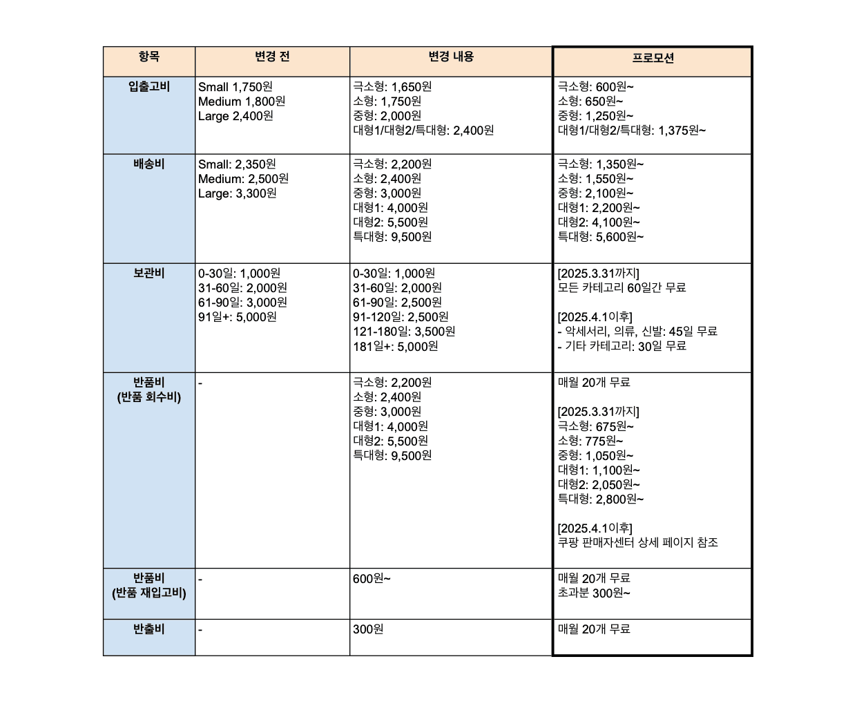 쿠팡에는 3가지 판매자 유형이 있다. 쿠팡에서 직매입해 판매하는 로켓배송 셀러, 쿠팡의 3자 물류서비스를 이용하는 로켓그로스 셀러, 플랫폼만 제공받아 상품을 판매하는 판매자배송 셀러이다. 필자는 로켓배송 입점 제안을 받았으나 좋게 말하면 보류, 즉 거절한 상태로 로켓그로스 셀러로 판매를 이어가고 있다. 쿠팡은 해당 로켓그로스 상품의 반품비용을 2025년 1월 6일부터 발생하게 된다. 구매자에게는 와우회원 무료반품! 홍보를 엄청 하면서 판매자에게는 반품비용을 청구하다니 어처구니없지만 그들의 운동장이니 규정을 따를 수밖에 없다.