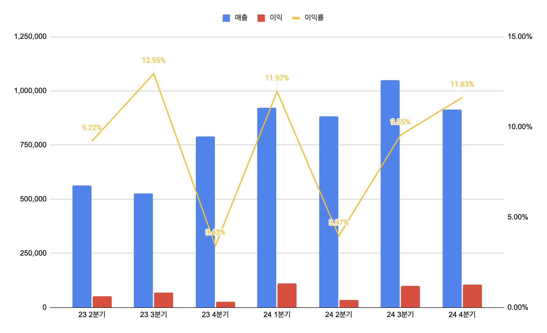 2024년 4분기 매출과 이익 차트 분석