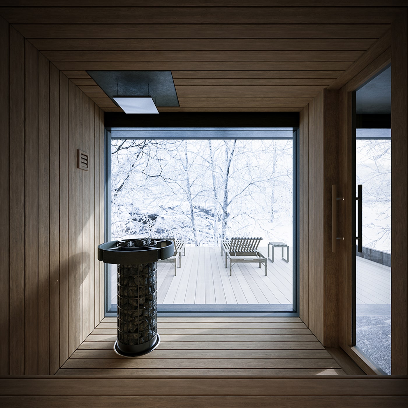 하마우즈: 반대로 사우나는 저희 쪽에서 고집한 요소였어요. 특히 L 모델은 통유리로 된 창문 너머의 풍경을 감상할 수 있도록 설계했습니다.