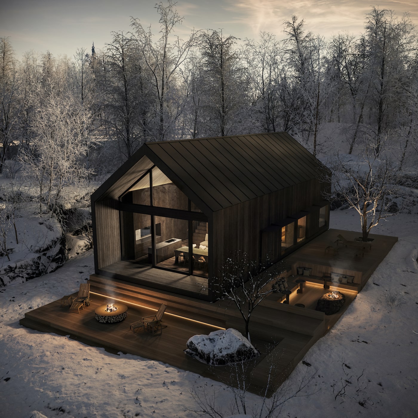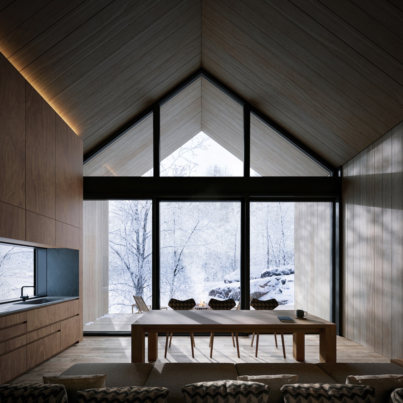 MODEL S는 실내 면적이 46㎡로 컴팩트하지만, 천장이 4.7m로 높아 개방감이 느껴지도록 설계되었습니다. 서재, 욕실, 2층 침실, 사우나, 외부 테라스 등 필요한 모든 요소를 갖추고 있습니다. 28㎡의 테라스는 앞에 펼쳐진 대자연과 함께 매우 쾌적한 공간을 제공합니다.