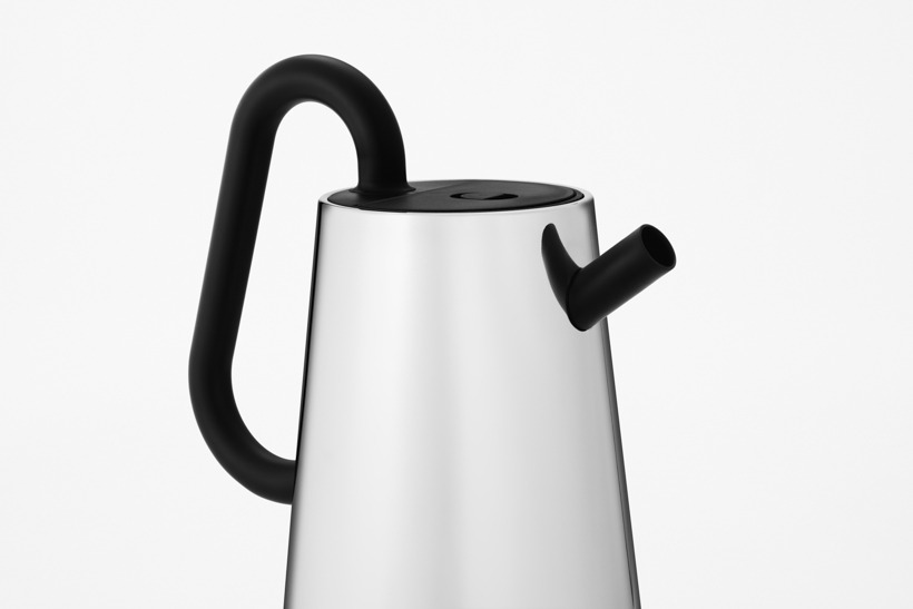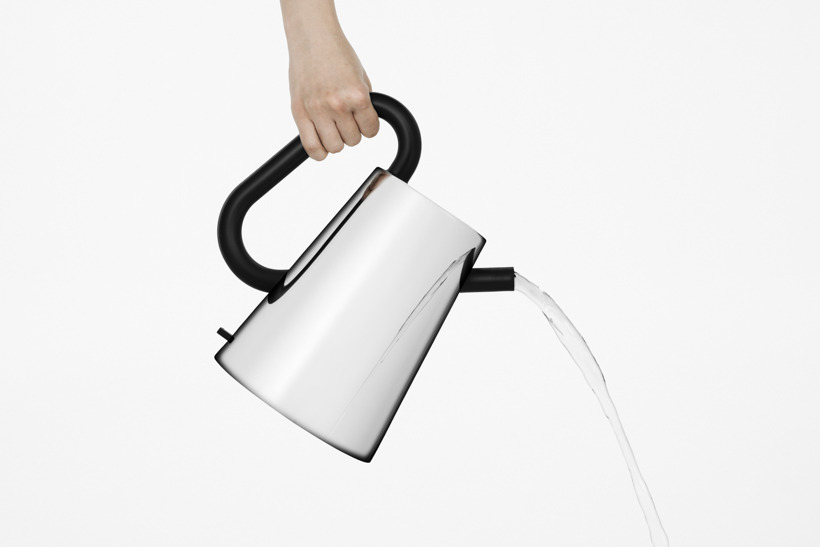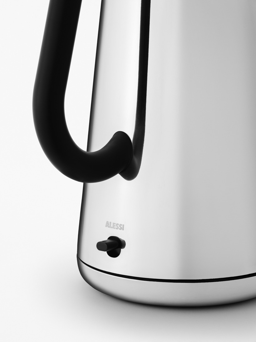 이탈리아의 금속 제품 전문 공방에서 시작된 Alessi(알레시)는 현대에 이르러 주로 키친 웨어와 테이블 웨어를 제작하는 브랜드로 유명합니다. 이번에 출시된 'Toru' 컬렉션은 Alessi의 전통적인 금속 가공 기술을 살려, 혁신적인 전기 주전자를 선보였습니다. 주전자의 본체는 스테인리스로 마감되어 있으며, 물주전자와 같은 간결한 형태를 띠고 있습니다. 손잡이는 상단에서 나와 본체의 측면을 통과하며, 마치 한 줄의 선처럼 주전자 끝까지 이어지는 독특한 디자인을 보여줍니다. 이러한 구조는 주전자 사용에 있어 새로운 방식의 편리함을 제공합니다.