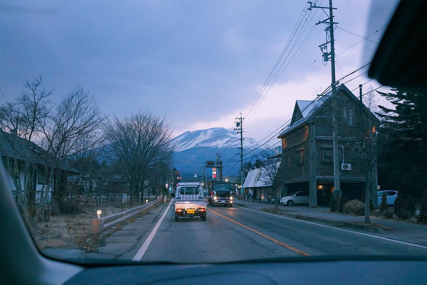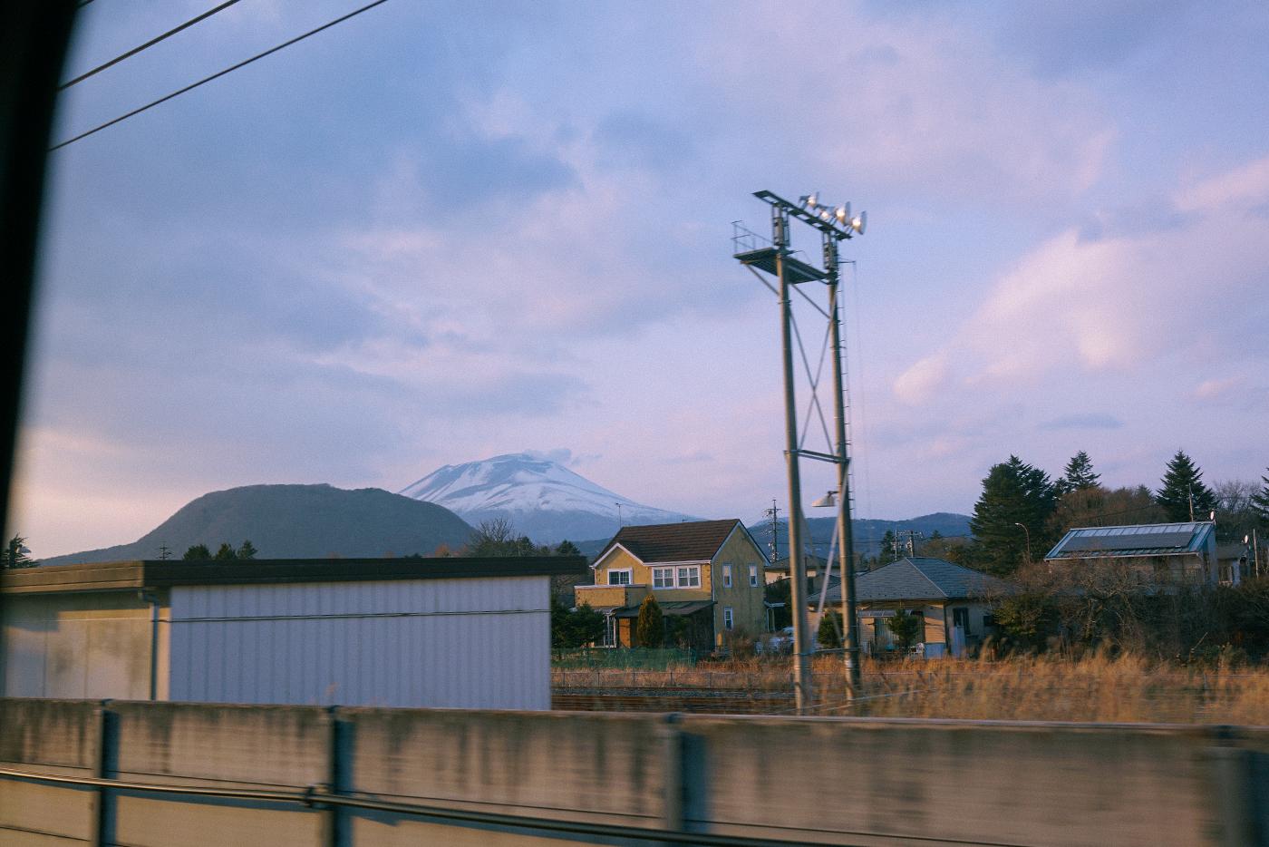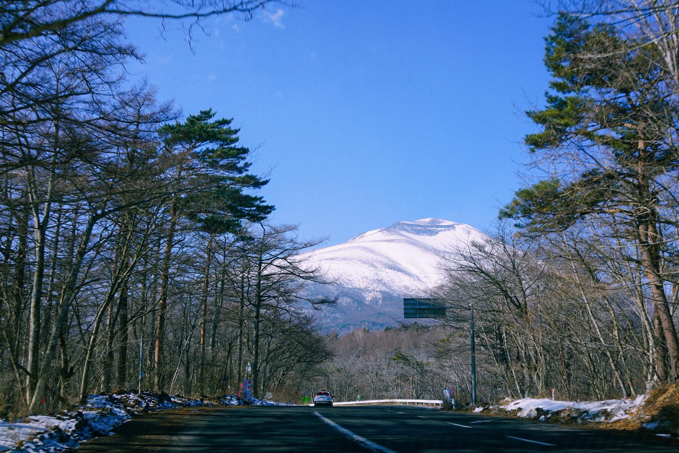 멀리 눈 내린 아사마 산을