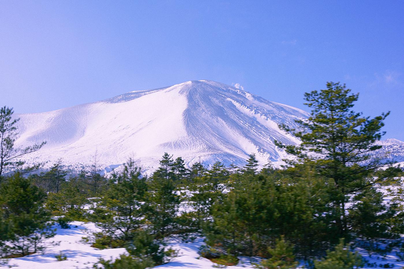 눈 덮힌 아사마 산의 풍경