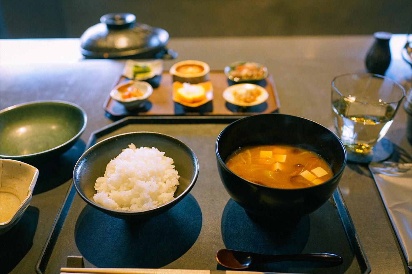 제공되고, 갓 지은 밥과 국