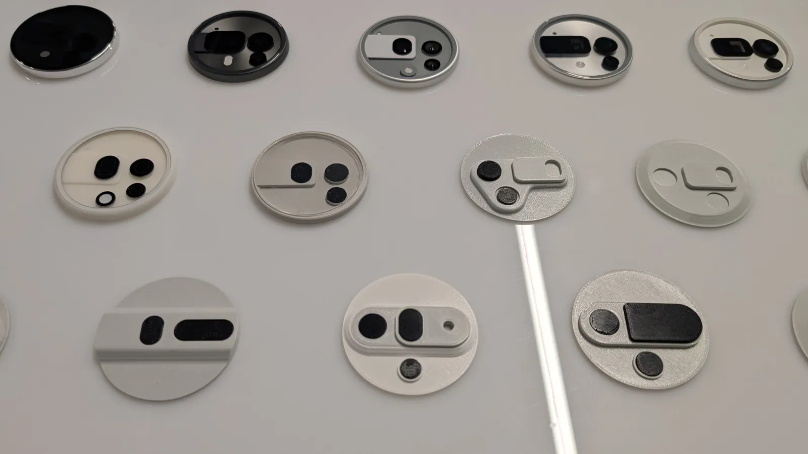 낫싱은 기존의 플라스틱 대신 유리와 금속을 활용하여 제품에 보다 견고하고 정교한 느낌을 부여하였습니다. 디자인 팀은 카메라 모듈과 후면 패널의 형태를 지속적으로 개선하며 수많은 3D 프린팅 및 물리적 모델 제작을 통해 최적의 디자인을 모색하였습니다. 다양한 소재와 색상의 조합은 제품의 외관과 촉감을 결정짓는 중요한 요소로 작용하였습니다. 새롭게 도입된 버튼은 전통적인 전원 및 볼륨 컨트롤과 차별화된 디자인을 선보이며, 재료 본연의 특성이 제품의 최종 형태에 큰 영향을 미치도록 하였습니다. 이러한 세밀한 소재 선택과 질감에 대한 탐구는 낫싱 폰이 독창적인 디자인으로 자리매김하는 데 크게 기여하였습니다.