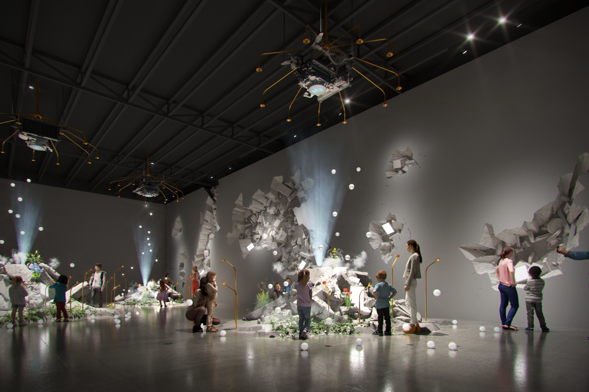 한국관은 총 세 개의 전시관으로 구성되어 각각의 주제 아래 몰입형 전시를 제공합니다. 제1관은 관람객의 목소리를 녹음해 AI 기술로 음악을 완성하고, 조명과 연동된 감각적 체험을 제공합니다. 제2관은 콘크리트와 일상 오브제를 활용해 황폐화된 도시에서 생명이 회복되는 이야기를 전합니다. 제3관은 미래 한국 사회를 배경으로 한 여고생과 할아버지의 사랑을 다룬 음악극으로 구성됩니다. 다면 스크린과 첨단 기술을 통해 시간이 흘러도 변하지 않는 가치를 전합니다. 각각의 전시는 사람과 사람, 세대와 문화를 잇는 감동의 메시지를 담고 있습니다.