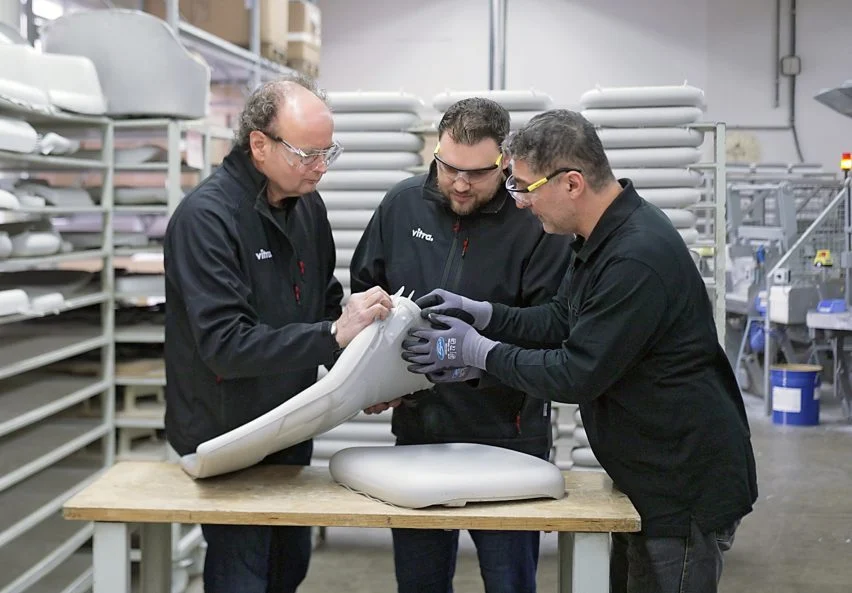 V-폼은 기존 PU 폼과 달리 열에 의해 녹여 재성형이 가능해, 폐기물 없이 다시 새로운 폼 제품으로 제작될 수 있습니다. 이는 기계적 재활용으로 분류되지만, 폼을 분자 수준에서 새로운 화합물로 변환하는 혁신적인 기술이 적용됐다고 비트라는 설명합니다. 구체적인 기술 내용은 특허 보호로 인해 공개되지 않았습니다. 비트라는 올해부터 이 소재를 자사 몰딩 폼 제품에 단계적으로 적용할 예정입니다. 이는 가구 업계에서 지속 가능한 재료 전환을 위한 큰 전환점이 될 것으로 보입니다.