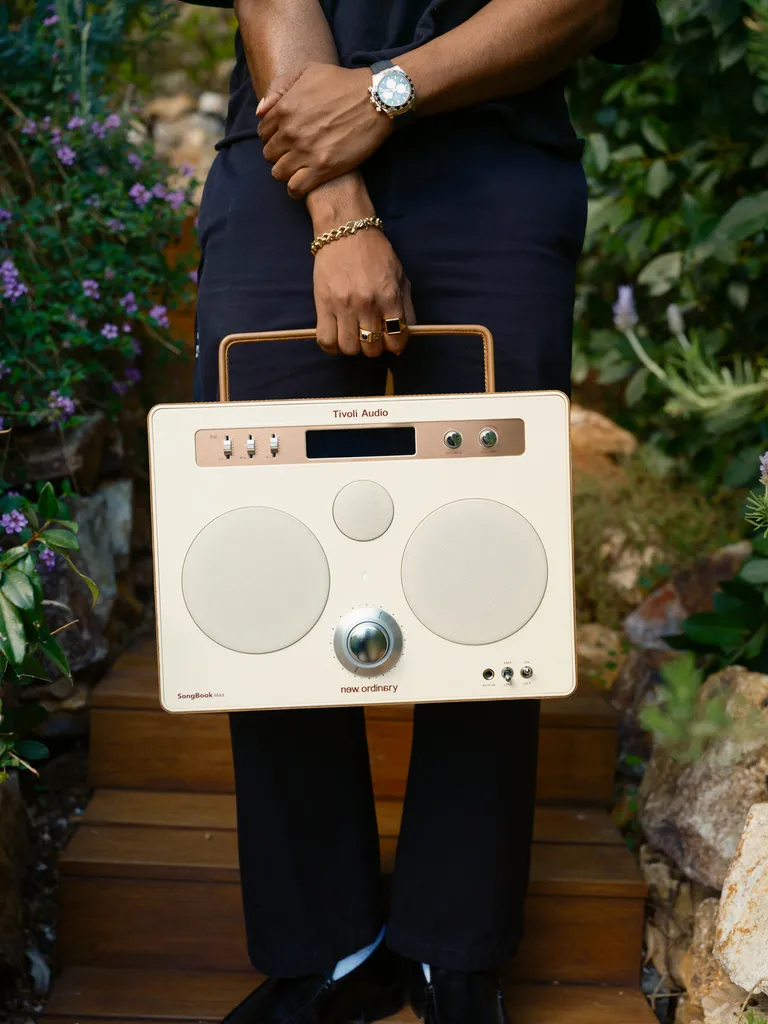 스피커 전문 브랜드 티볼리 오디오(Tivoli Audio)가 미국 캘리포니아 기반의 신생 제작사 뉴.오디너리(new.ordinary)와 손잡고 특별한 한정판 포터블 스피커를 선보였습니다. 이번 협업은 그래미 수상 경력을 지닌 프로듀서 사운웨이브(Sounwave, 본명 마크 앤서니 스피어스)의 지휘 아래 제작되었으며, 제품명은 ‘티볼리 오디오 x 뉴.오디너리 송북 맥스(SongBook MAX)’입니다. 크림 컬러로 제작된 이 제품은 전 세계 단 60대만 생산되며, 각기 고유 번호와 사운웨이브의 로고가 새겨져 있어 소장 가치를 더합니다.