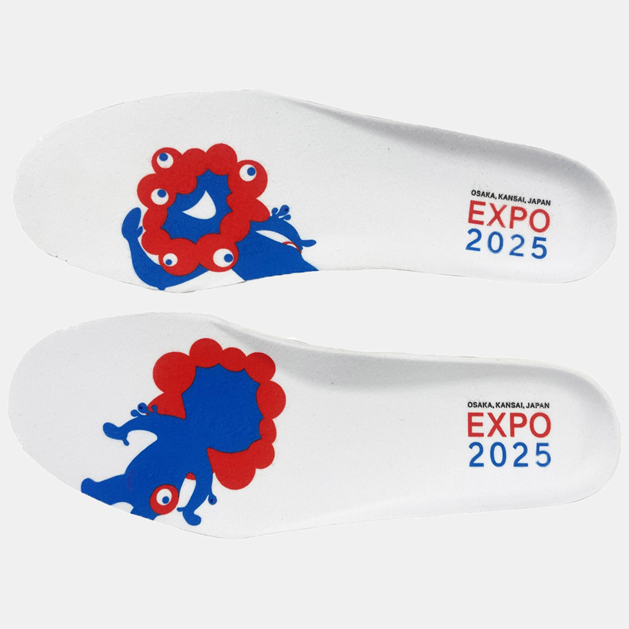 운동화 디자인은 엑스포 로고에서 추가로 영감을 받았는데, 이 로고는 디자이너 시마다 타모츠(Tamotsu Shimada)가 제작한 것으로, 오사카의 형상을 본뜬 불규칙한 붉은 원형들의 고리와 눈알이 포함되어 있습니다. 이 로고는 행사 전반에 걸친 브랜드 아이덴티티 구축에 활용되고 있으며, 마스코트 및 공식 굿즈 전반의 기초가 되었습니다.