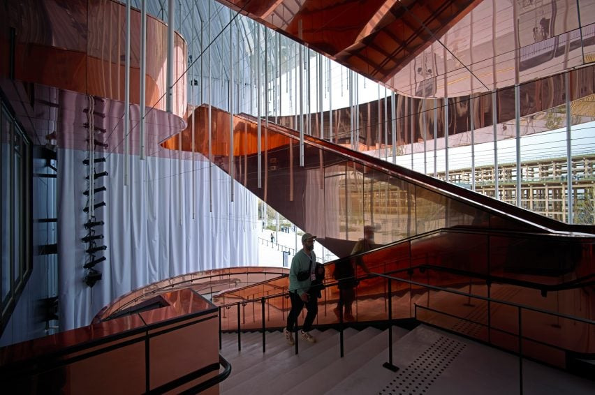 카를로 라티는 이 계단을 ‘휴먼 콘덴서’로 명명하며, 사람 간의 상호작용을 유도하는 장치로 구상했다고 밝혔습니다. 그는 디지털 플랫폼이 아닌 물리적 공간만이 다양한 사람들이 자연스럽게 연결되는 기회를 제공한다고 강조합니다. 이러한 개념은 그가 설계한 밀라노 MEET 디지털 센터에서도 구현된 바 있습니다. 프랑스관에서는 이 계단을 통해 사람들이 만남과 교류를 경험할 수 있도록 유도합니다. 결국 공간 자체가 커뮤니케이션의 장으로 기능하게 되는 것입니다.