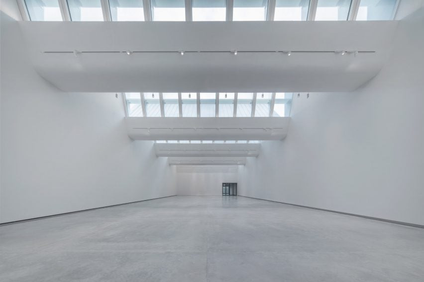 지상층은 콘크리트 기둥으로 나뉜 다소 어두운 전시 공간이 형성되어 있으며, 2층은 톱니 지붕에서 유입된 자연광이 흰 벽면을 부드럽게 밝히는 구조입니다. 이 외에도 원뿔 형태의 ‘채플’ 갤러리와 외부 물 요소 위에 놓인 콘크리트 플랫폼이 존재해, 예술과 명상이 만나는 장소로서의 역할을 합니다. 박물관은 오픈과 함께 자체 소장품을 중심으로 한 기획전 ‘보이지 않는 존재(Invisible Presence)’를 개최할 예정이며, 태국 작가 몬티엔 분마(Montien Boonma)와 리 불(Lee Bul), 안젤름 키퍼(Anselm Kiefer), 알리샤 콰데(Alicja Kwade) 등의 대형 설치 작품도 선보입니다.