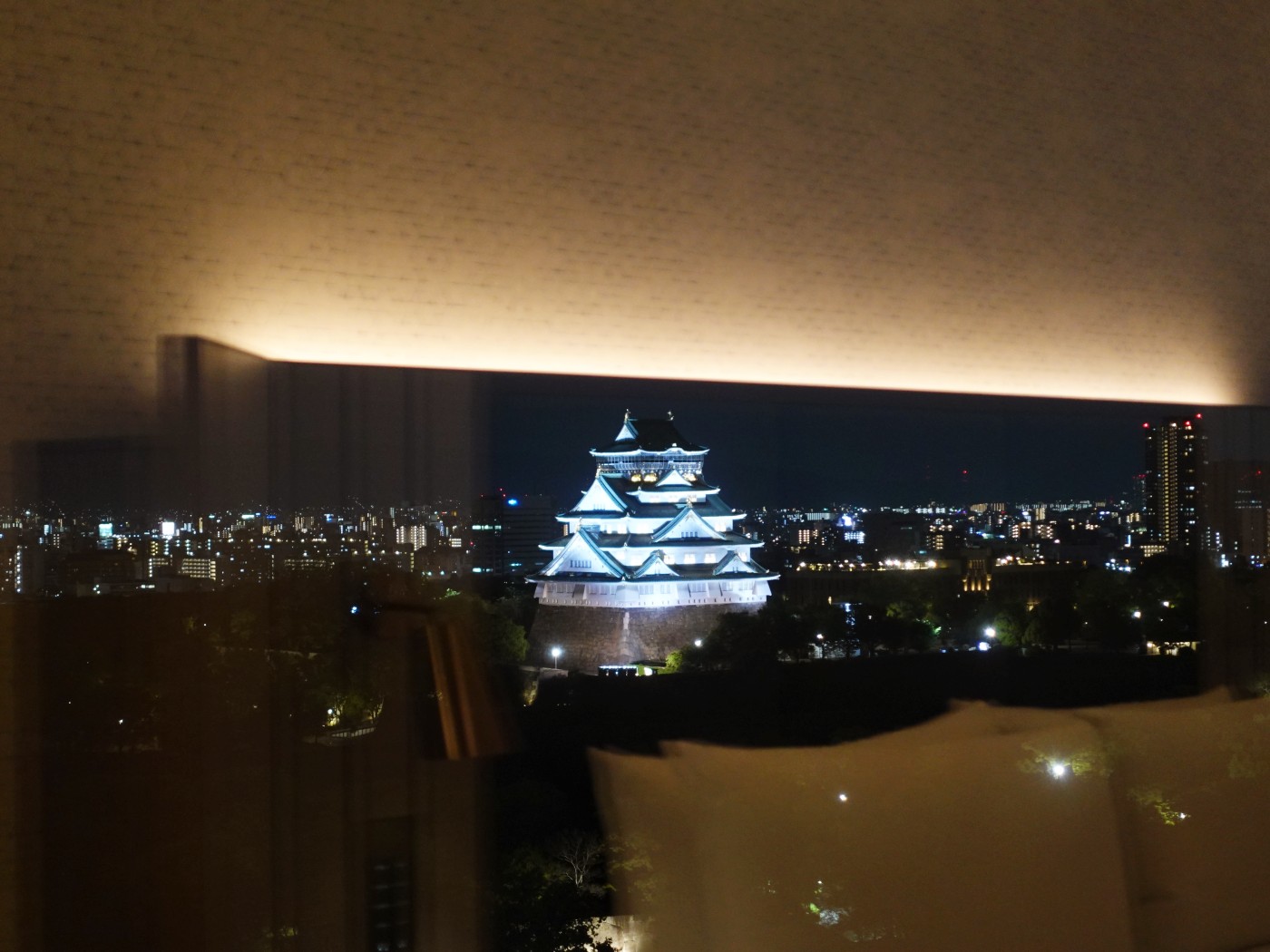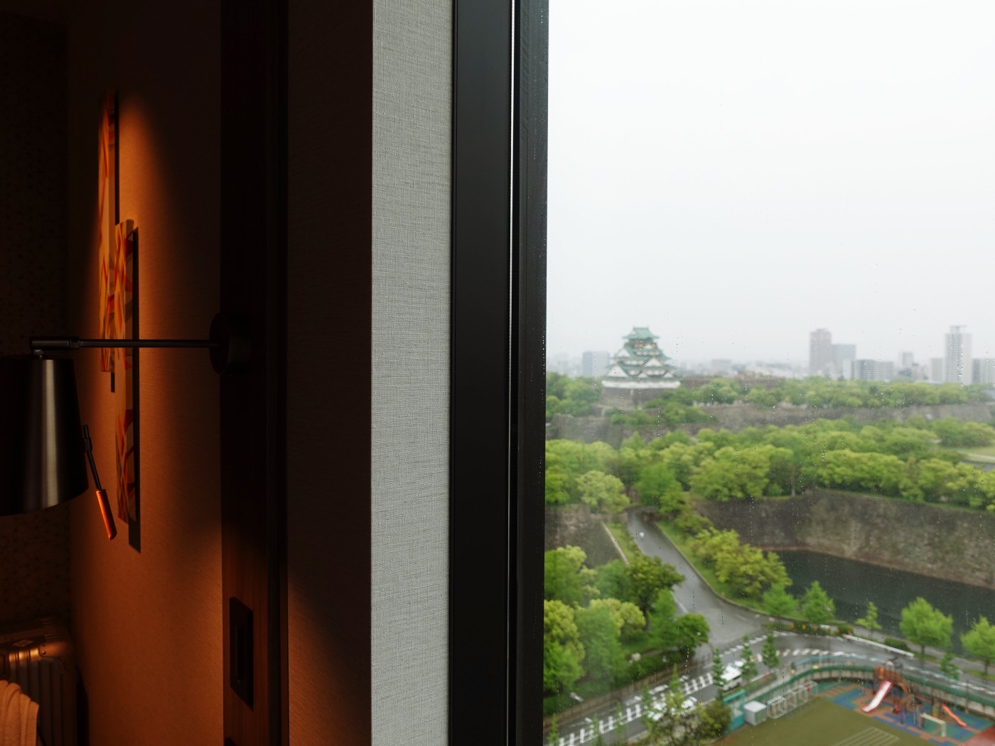 객실에서 바라본 해 질 녘 오사카 성 풍경이