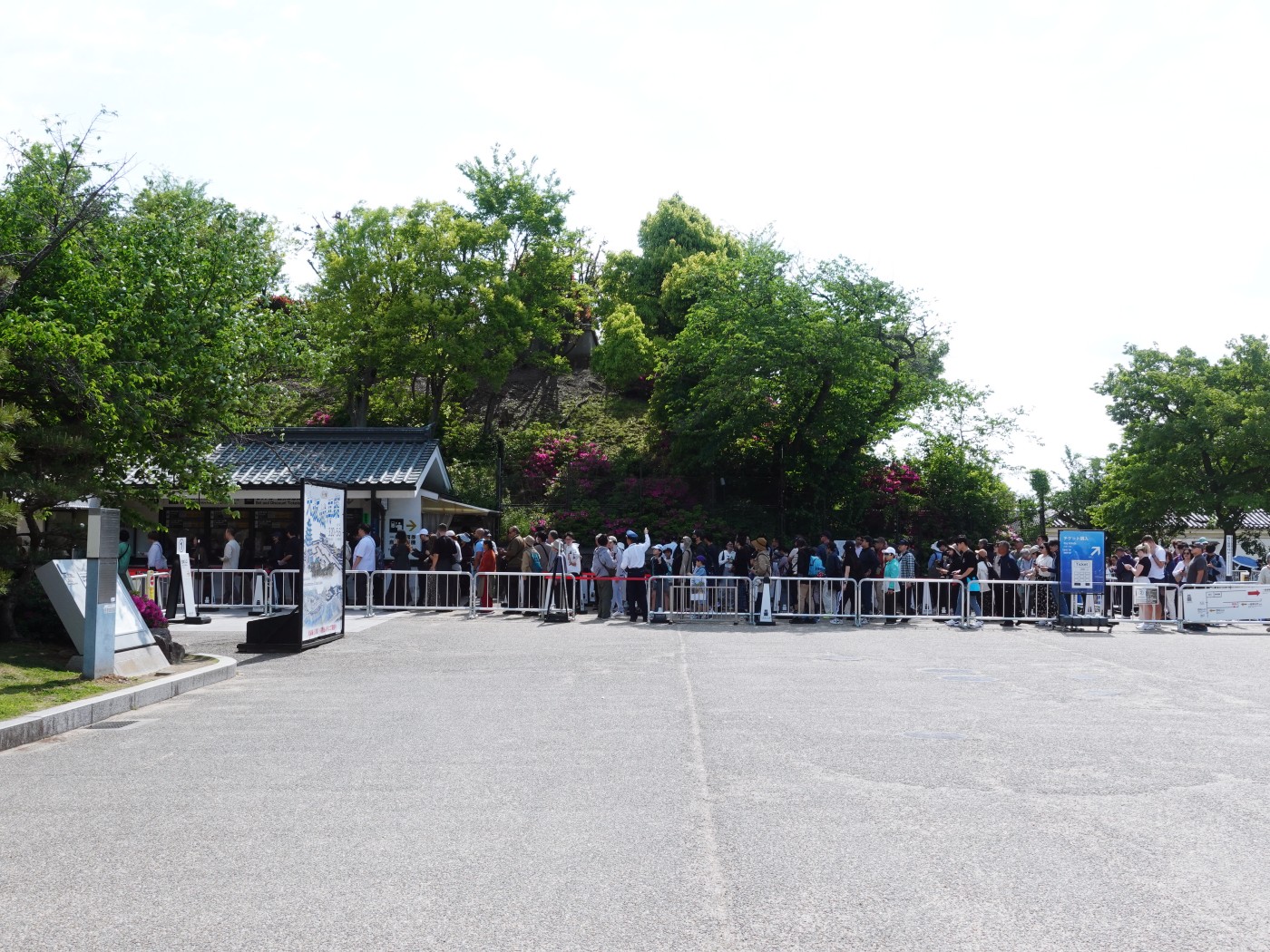 과거에 출세한 사람들이 오사카 성을 방문하며